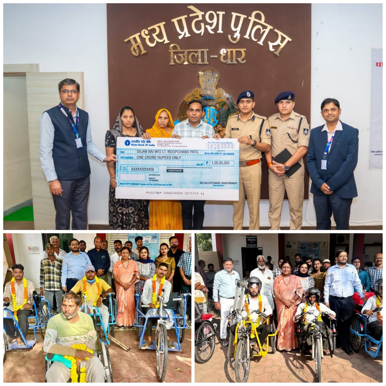 पुलिस अधीक्षक श्री मयंक अवस्थी द्वारा पुलिस विभाग के दिवंगत कर्मचारी स्व.श्री रूपचंद पाटिल की पत्नी को मंगलवार को एक करोड़ रुपये का चेक प्रदान किया। पुलिस अधीक्षक श्री अवस्थी ने एसबीआई कलेक्ट्रेट शाखा धार को बीमा राशि भुगतान की त्वरित कार्यवाही के लिए धन्यवाद दिया। भारतीय स्टेट बैंक के क्षेत्रीय प्रबंधक श्री मनीष दास द्वारा बताया गया कि भारतीय स्टेट बैंक कलेक्ट्रेट शाखा के द्वारा मध्यप्रदेश पुलिस के दिवंगत कर्मचारी, स्व. श्री रूपचंद पाटिल के आधिकारिक नॉमिनी पत्नी श्रीमती सजन बाई को पूर्ण आकस्मिक मृत्यु बीमा लाभ एक करोड़ रुपये सफलतापूर्वक और शीघ्रता से वितरित कर दिया गया। स्व.श्री रूपचंद पाटिल की दुर्घटना होने से 20 मार्च 2025 को आकस्मिक मृत्यु हो गई थी।भारतीय स्टेट बैंक और मध्यप्रदेश पुलिस पी.एच.क्यू. भोपाल के बीच दिनांक 24 सितम्बर 2024 को हुए एक समझौता ज्ञापन (एमओयू) के तहत, पुलिस वेतन पैकेज खाते द्वारा प्रदान किए गए व्यापक लाभों के माध्यम से, जिसमे दुर्घटना बीमा राशि एक करोड़ रूपये का लाभ नॉमिनी को प्रदान किया गया। यह पैकेज विशेष रूप से अप्रत्याशित त्रासदी के समय पुलिस कर्मियों के परिवारों को मजबूती प्रदान करता है।विद्यार्थियों को मध्यप्रदेश की भौगोलिक स्थिति से अवगत कराया धार 4 नवंबर 25। मध्यप्रदेश स्थापना दिवस के अवसर पर प्रधानमंत्री कॉलेज ऑफ एक्सिलेंस धार में तीन दिवसीय कार्यक्रम का समापन सोमवार को महाविद्यालय के प्राचार्य डॉ. एस.एस. बघेल एवं प्रशासनिक अधिकारी डॉ. आईशा खान के मार्गदर्शन में विभिन्न गतिविधियों के साथ सम्पन्न हुआ। इस अवसर पर प्राचार्य डॉं. बघेल ने अपने उद्बोधन में विद्यार्थियों को मध्यप्रदेश की भौगोलिक स्थिति से अवगत कराते हुए महत्वपूर्ण पर्यटन स्थलों एवं मध्यप्रदेश की विशेष उपलब्धियों के बारे में विस्तार से बताया। महाविद्यालय की नोडल अधिकारी डॉ. प्रभा सोनी ने अपने उद्बोधन में कहा कि विद्यार्थियों को प्रतियोगिताओं में बढ़-चढ़कर हिस्सा लेना चाहिए। प्रतियोगिताओं से न केवल व्यक्तित्व में निखार आता है बल्कि प्रतियोगिताओं के माध्यम से विद्यार्थी अपने प्रदेश और देश का नाम विश्व भर में रोशन कर सकता है। आयोजित प्रतियोगिताओं में निबंध में प्रथम स्थान मोनिका मंडलोई, द्वितीय स्थान ललिता गिलेश तथा तृतीय स्थान सेवंता निनामा ने प्राप्त किया। सामान्य ज्ञान प्रतियोगिता में प्रथम स्थान देवांश प्रजापति, द्वितीय स्थान प्रीति मंडलोई तथा तृतीय स्थान कोमल मंडलोई ने प्राप्त किया। विजेता विद्यार्थियों को प्रमाण पत्र वितरित किए गए। सांस्कृतिक एवं साहित्यिक कार्यक्रम में प्राध्यापक एवं विद्यार्थियों ने उत्साहपूर्वक सहभागिता की। संपूर्ण कार्य