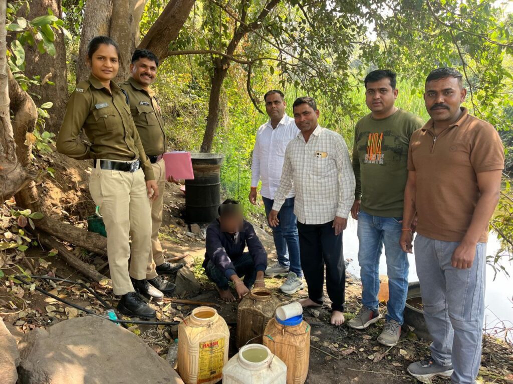 आरोपी के कब्जे से पुलिस ने की 60 लीटर अवैध कच्ची महुआ शराब कीमत लगभग 6000/- रुपये व अवैध शराब बनाने के संसाधन कीमत लगभग 1500/- रुपये के किए जप्त,