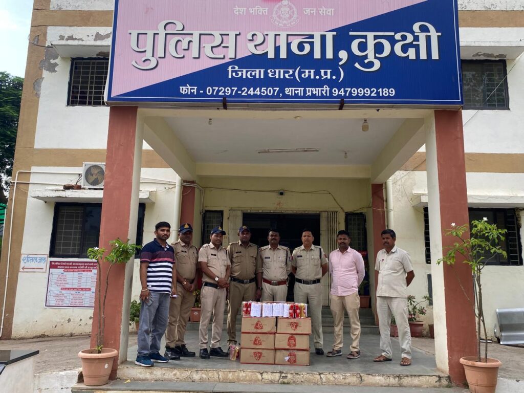 वरिष्ट पुलिस अधीक्षक धार श्री मनोज कुमार सिंह के निर्देशन में श्रीमान अतिरिक्त पुलिस अधीक्षक धार श्री विजय डावर एवं अनुविभागीय अधिकारी (पुलिस) कुक्षी श्री सुनिल गुप्ता के मार्ग दर्शन में अवैध शराब, मादक पदार्थ की तस्करी के विरुद्ध कार्यवाही करने हेतु निर्देशित किया गया था जो थाना प्रभारी कुक्षी राजेश यादव ने एक टीम गठित की। टीम के लगातार प्रयास से मुखबीर के माध्यम से सूचना मिली कि बडदा रोड तरफ से एक महिन्द्रा रेनाल्ट कार जिसमें अवैध शराब है कुक्षी तरफ आने वाली है सूचना पर टीम द्वारा बडदा रोड पर नाकाबंदी कि नानपुर से एक महिन्द्रा रेनाल्ट कार क्रमांक GJ-06-ED-2296 आई जो पुलिस को देख कर तेज रफ्तार से भागे तथा अपनी कार को बडदा रोड सिलकुंआ के पास छोड कर भाग गया कार की तलासी लेते उसमें 15 पेटी माउंट बियर शराब, 180 बल्क लीटर कीमती 50 हजार है, कार कि किमत डेढ़ लाख रुपए की मिली जिसे जप्त कर। पुलिस ने अज्ञात आरोपी के विरुध्द प्रकरण दर्ज कर विवेचना में लिया गया।