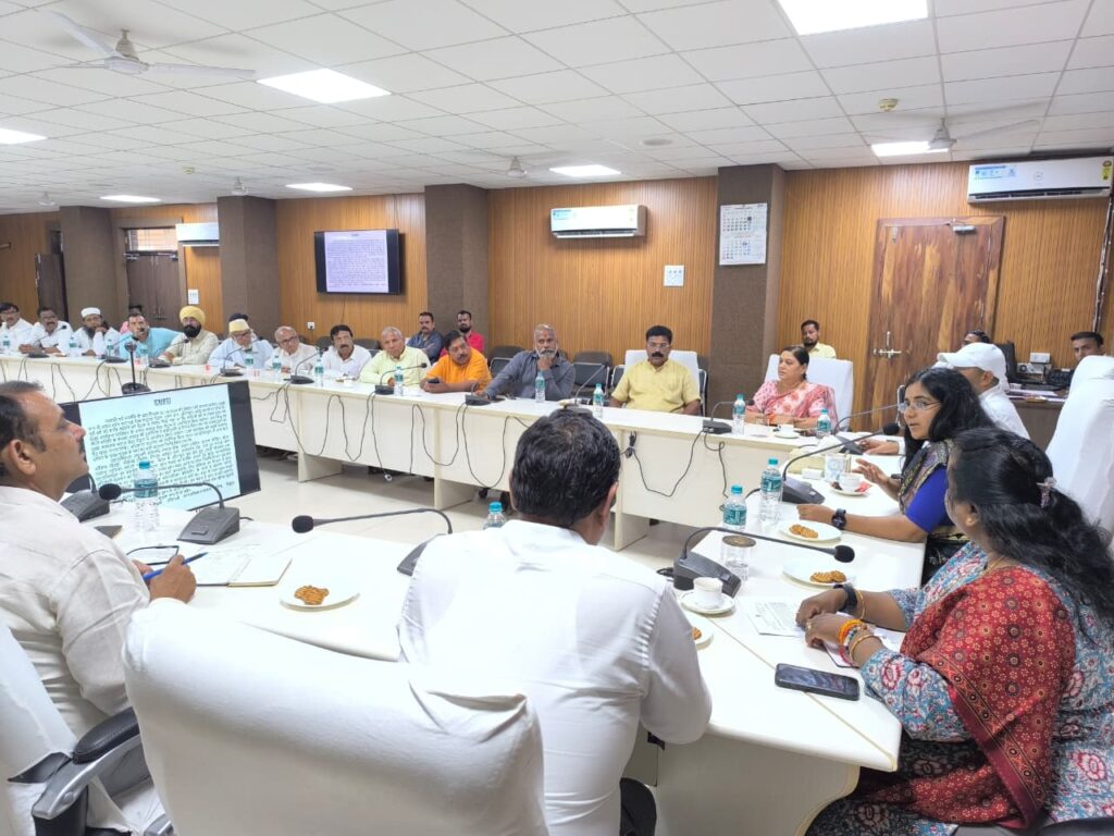 खरगोन । कलेक्टर सुश्री भव्या मित्तल की अध्यक्षता और पुलिस अधीक्षक धर्मराज मीणा की उपस्थिति में कलेक्ट्रेट कार्यालय में आगामी त्यौहारों को दृष्टिगत रखते हुए जिला स्तरीय शांति समिति की बैठक आयोजित की गई। बैठक में जिला पंचायत के मुख्य कार्यपालन अधिकारी आकाश सिंह, अपर कलेक्टर श्रीमती रेखा राठौर, एसडीएम विजेन्द्र कटारे, डिप्टी कलेक्टर अनिल जैन, नगर पालिका अध्यक्ष श्रीमती छाया जोशी, नगर पालिका सीएमओ सुश्री कमला कोल सहित शांति समिति के सदस्य उपस्थित थे।